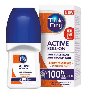 Triple Dry Active Roll On is a clinically proven, high-performance anti-perspirant. It protects against excessive sweating and odour for 100-hours with its advanced triple active formulation.
