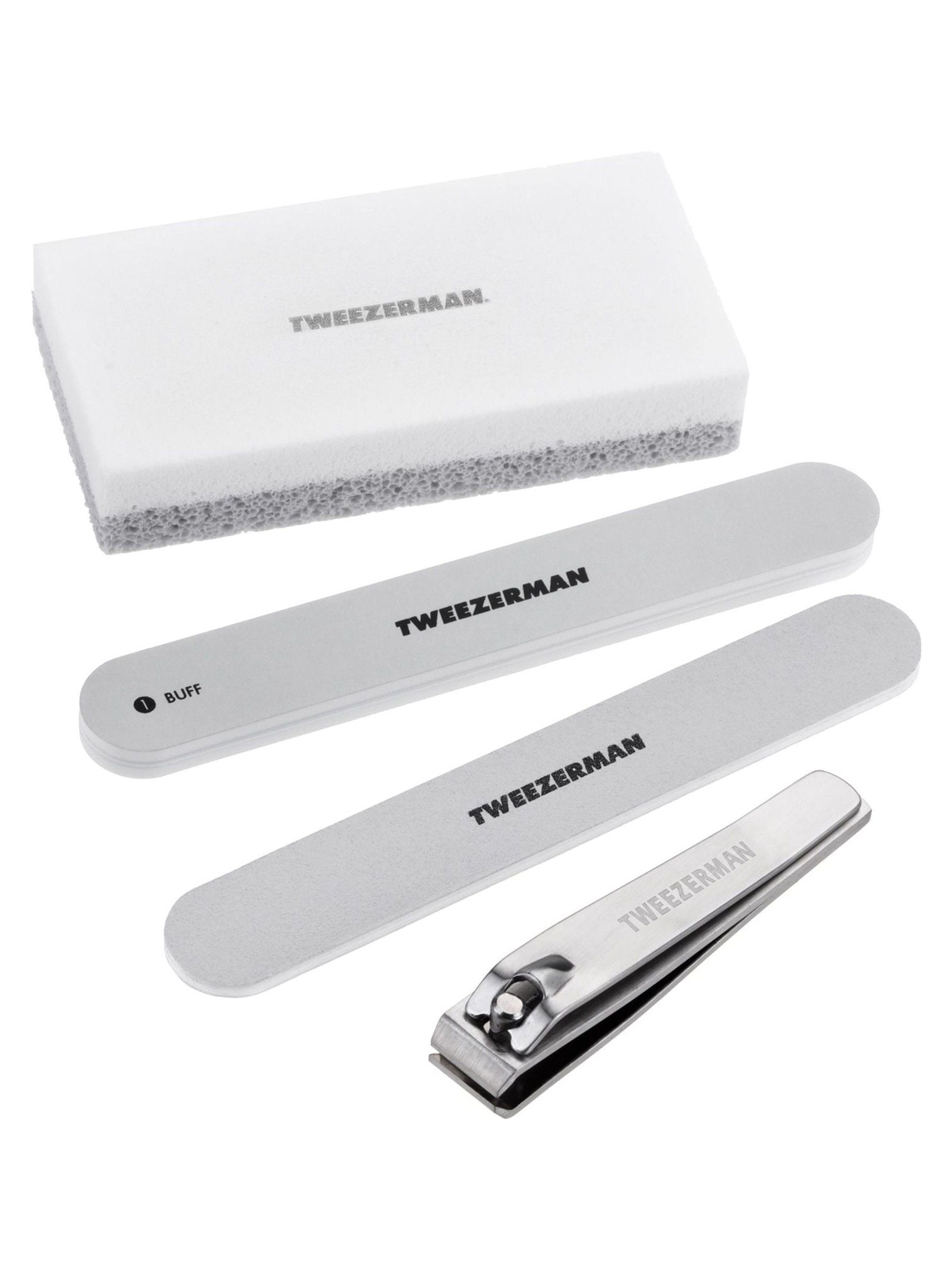 The Essential Pedicure Kit features precision tools for excellent nail care to help reveal radiant, smooth skin. Equipped with a pedicure stone, toenail clipper, nail file, and nail buffer, this kit is travel-friendly and includes everything you need to keep feet soft and toes perfectly pedicured all year long.