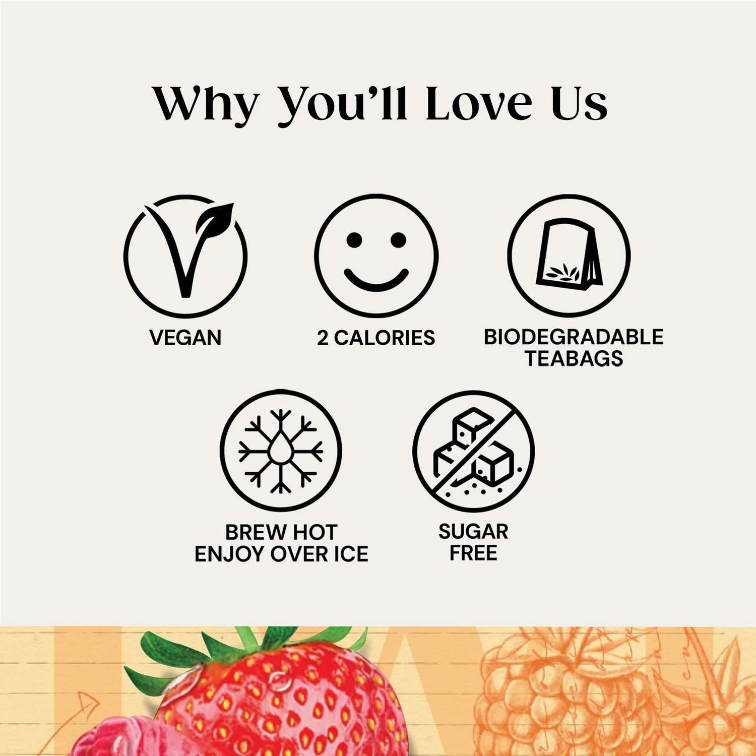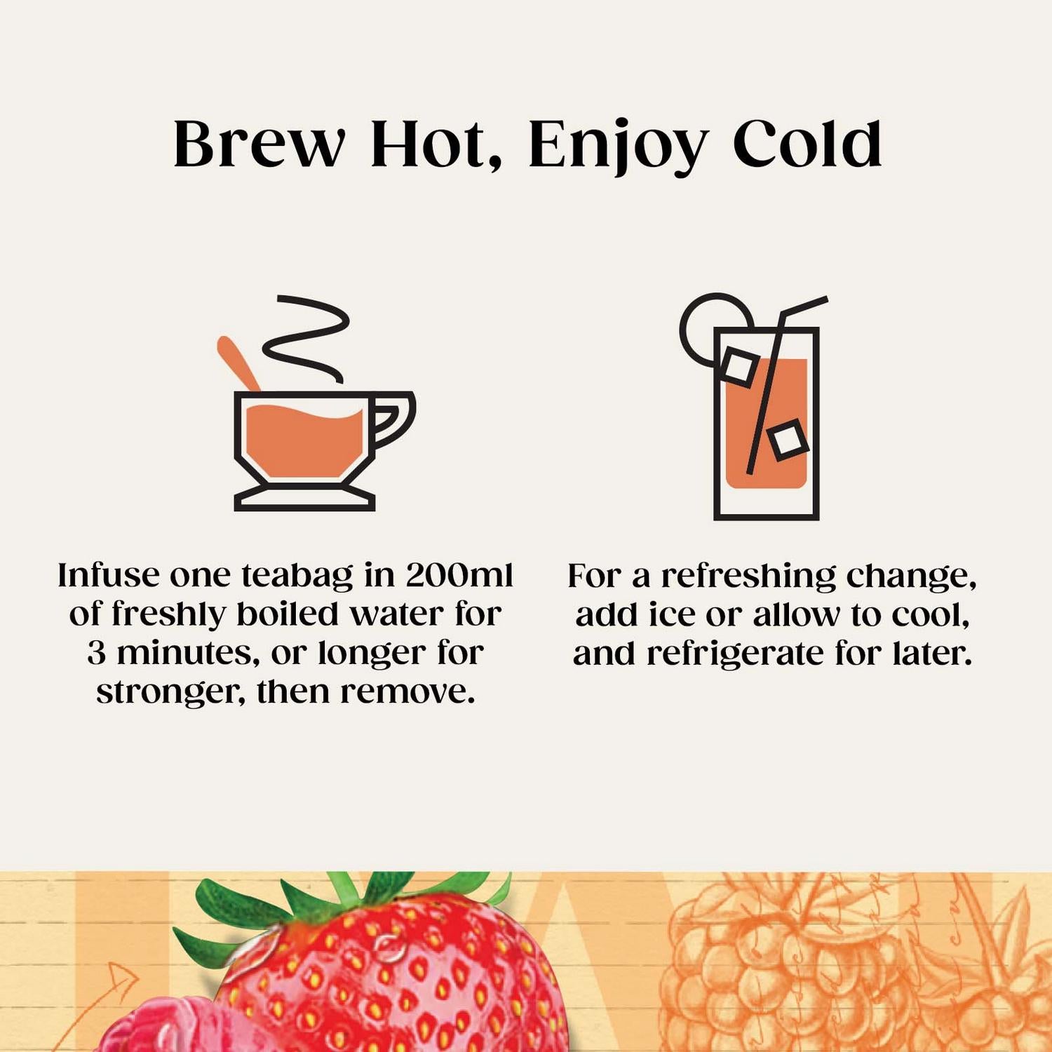 Read MoreA peppermint infusion. A lemon and ginger flavoured herbal infusion. A camomile infusion. A strawberry and raspberry flavoured infusion.