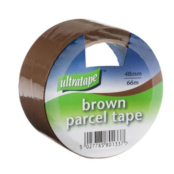 This listing provides a bulk pack of six rolls of reliable brown parcel tape, manufactured under the trusted Ultratape brand name. Each standard roll is factory sealed and designed for effectively securing packages for shipping or long-term storage applications. This economical multi-pack ensures you maintain a sufficient supply for frequent mailing.