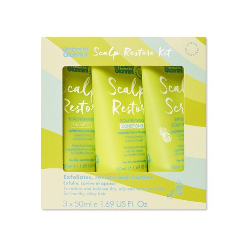 Umberto Giannini presents this bestselling scalp wash-day favourites collection in a convenient travel starter set. This 3 x 50ml kit addresses the root of common scalp issues, helping you achieve healthier hair. The formulation works to cleanse, detoxify, and soothe the scalp area effectively.