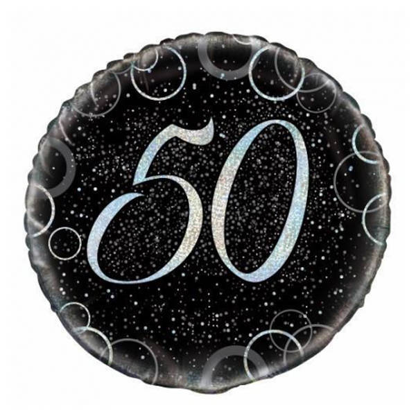 Material: Foil. Width: 18in. Design: Glitter, Number, Printed, Round. Occasion: 50th Birthday. Please Note: Supplied Deflated.