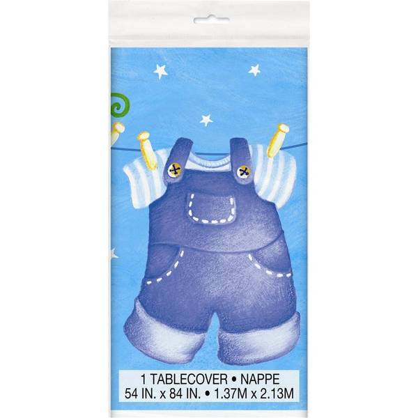 Organise your celebration setting efficiently using the Unique Party plastic baby shower tablecloth. This essential accessory measures 7ft long by 45ft wide, offering ample surface coverage for various table sizes. Its robust plastic material aids in quick clean-up post-event.