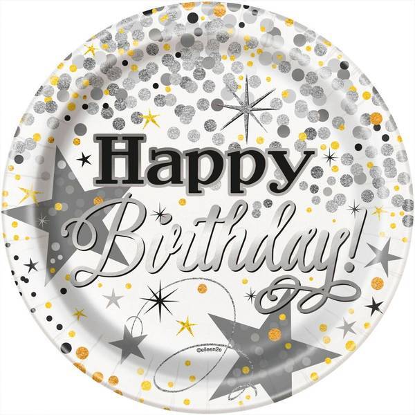 Prepare for your next celebration with these Unique Party Foil Glitter Birthday Party Plates. These disposable items are constructed from sturdy foil paper, offering a practical yet festive serving solution for guests. This convenient set supplies eight individual plates suitable for your event needs.