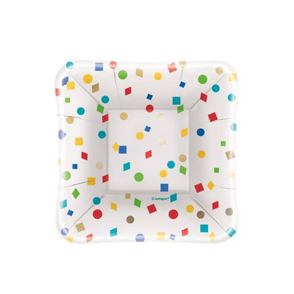 These Unique paper plates bring a vibrant, celebratory look to any occasion. Sold in a convenient pack of eight, the square design offers a modern aesthetic for serving appetisers or desserts. The colourful confetti motif ensures your table setting is instantly festive.