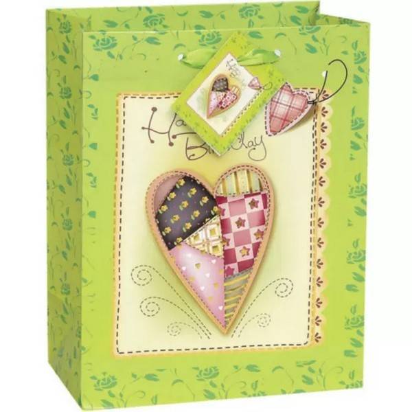 design heart patchwork printed text carry handles occasion birthday