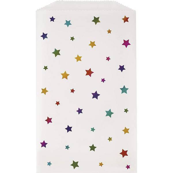 These Unique Party Rainbow Stars Foil Treat Bags are supplied in a practical pack containing four individual units. They feature a highly decorative rainbow stars design, suitable for presenting small items at various celebrations. The construction carefully incorporates foil and glassine materials to ensure an attractive presentation.