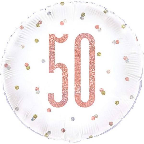 Celebrate a significant milestone with this round foil balloon from Unique Party. Measuring 18 inches in width, it features a festive mix of glitter, numbers, polka dots, and printed details for a truly celebratory look. This 50th birthday decoration is supplied deflated, ready for inflation at your convenience. It serves as a clear and necessary visual highlight for the whole event.