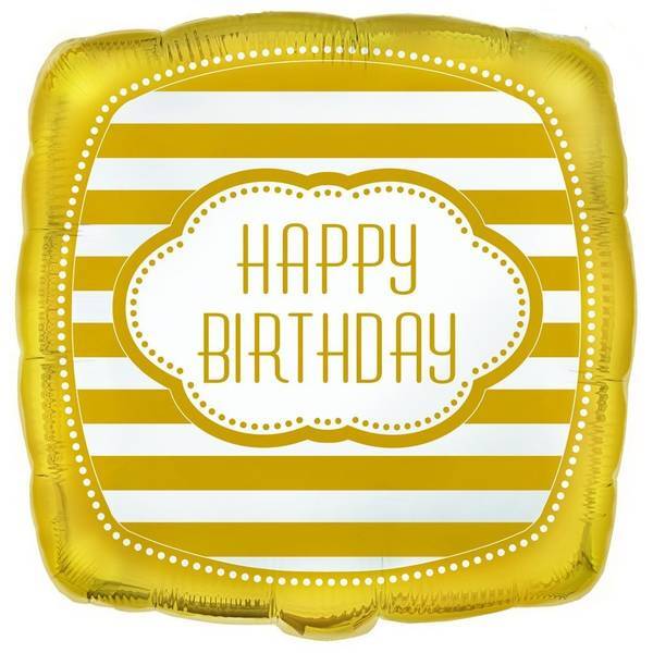 Read MoreMaterial: Foil. Width: 18in. Design: Dotted, Striped, Text. Occasion: Birthday. Shape: Square. Please Note: Supplied Deflated.