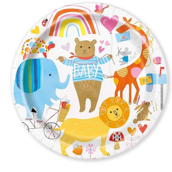 Product Information material paper width 7in design animals balloons bicycle post box rainbow occasion baby shower