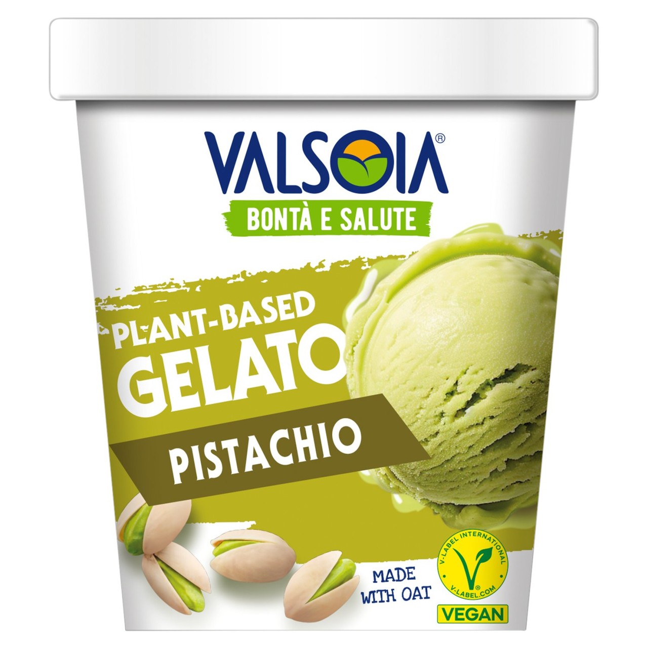 Valsoia presents its Pistachio Oat Based Gelato, offering a truly Italian, plant-based indulgence experience. This delicious frozen dessert is crafted using an oat base, providing a rich and creamy texture without dairy. It is certified vegan, making it suitable for various dietary needs while maintaining authentic gelato quality.