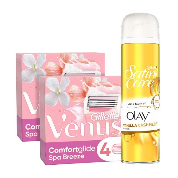 Read Morerestock for your favourite shave with our venus spa breeze refill bundle includes 8 venus spa breeze blades and a vanilla cashmere shaving gel