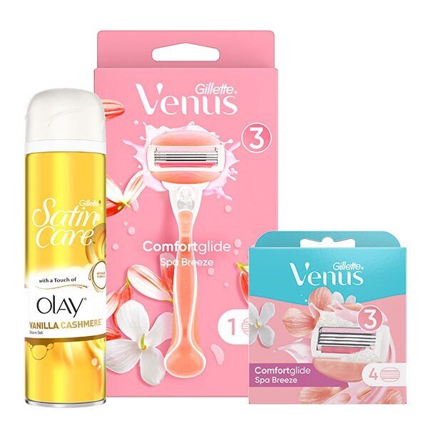 get yourself everything you need for a smooth shave with our venus spa breeze starter pack includes a venus spa breeze razor 4 venus spa breeze blades and a vanilla cashmere shaving gel