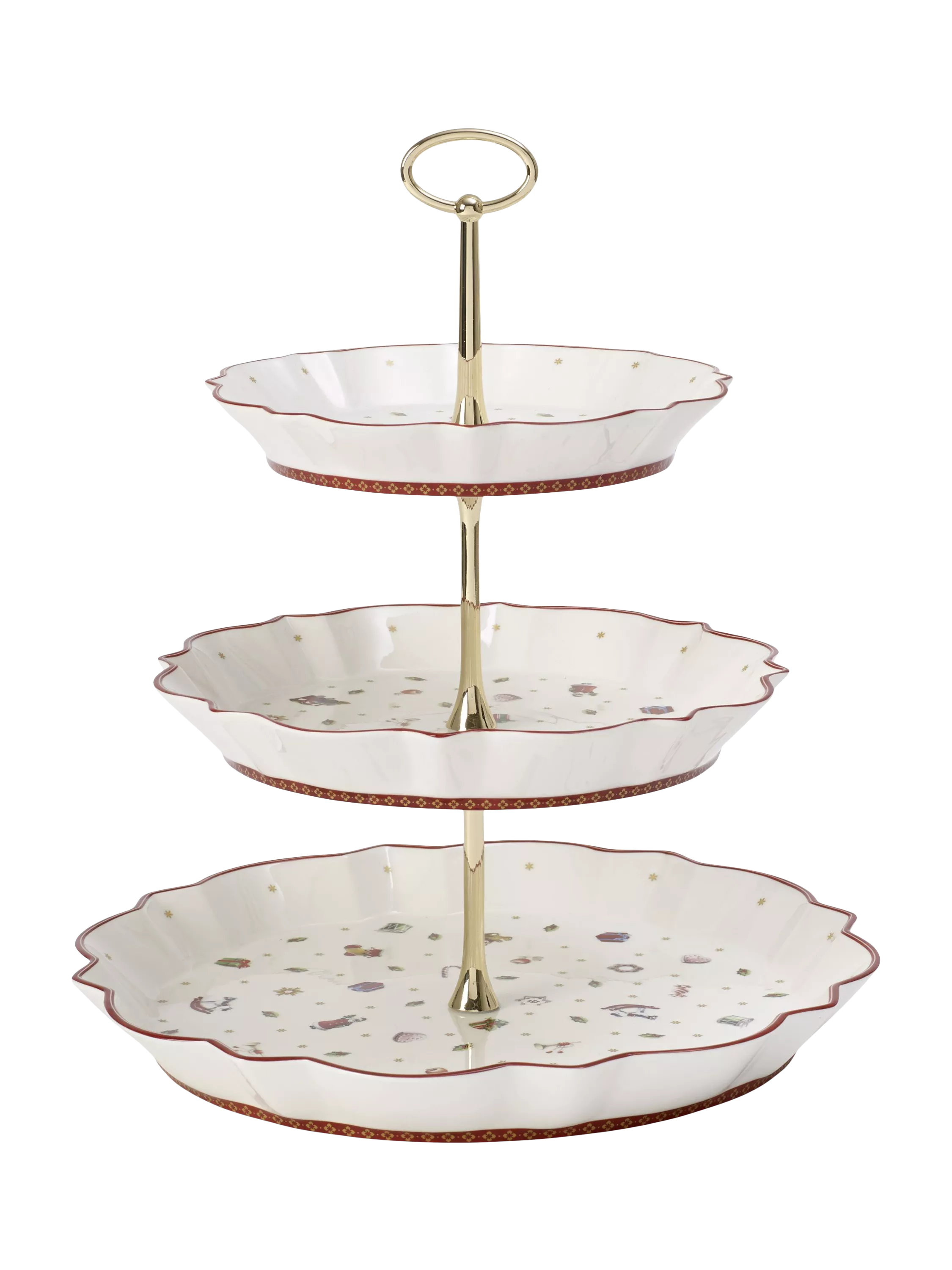 Serve Christmas cakes, bakes, treats and desserts on this three-tiered cake stand. Made from high-quality premium porcelain, it's packaged in a gift box.