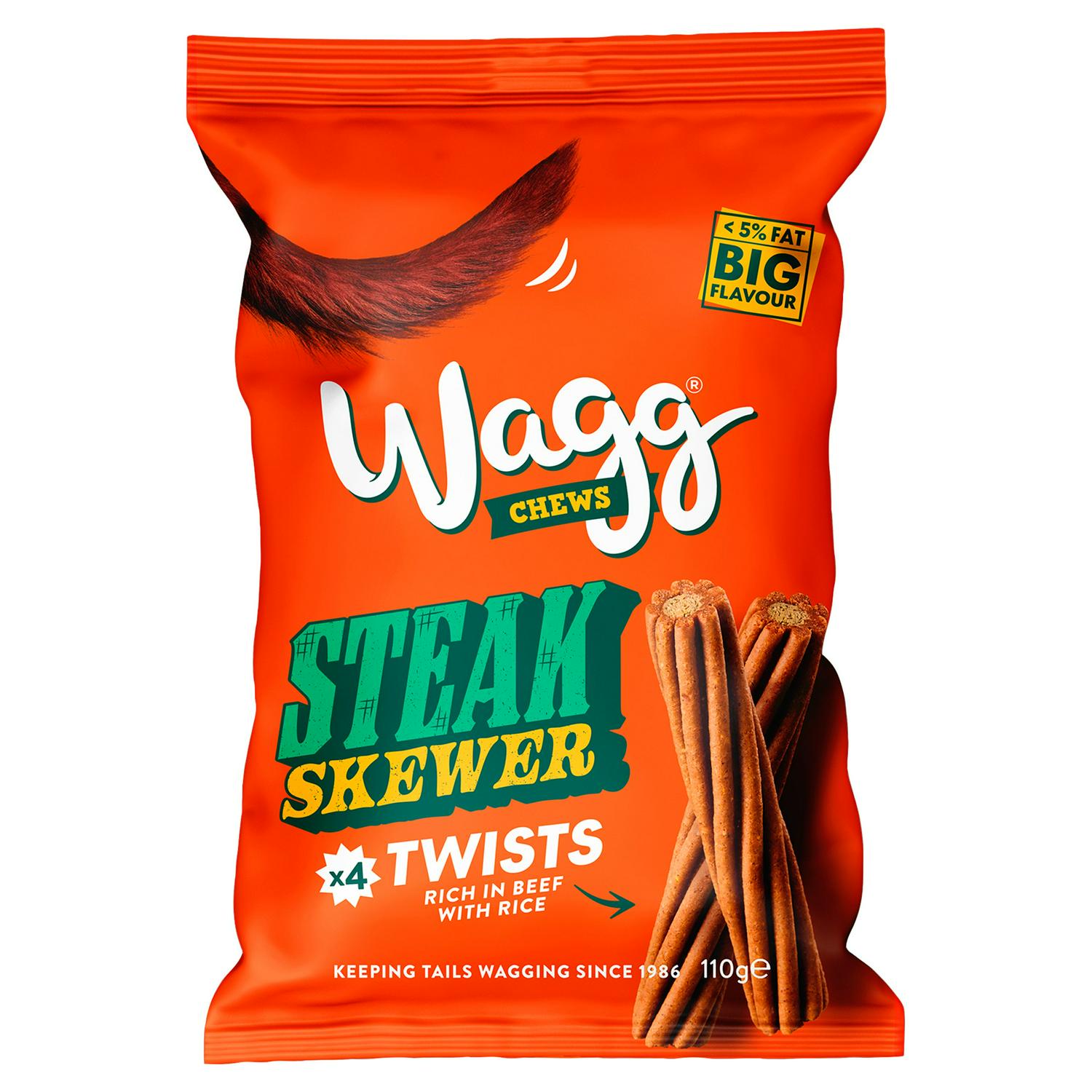 Wagg Chews Steak Skewer Twists are a complementary pet food designed for rewarding your dog during training or playtime. These moreishly meaty sticks deliver big flavour while adhering to specific nutritional standards. They are made using real meat ingredients ensuring quality and taste for your canine companion.