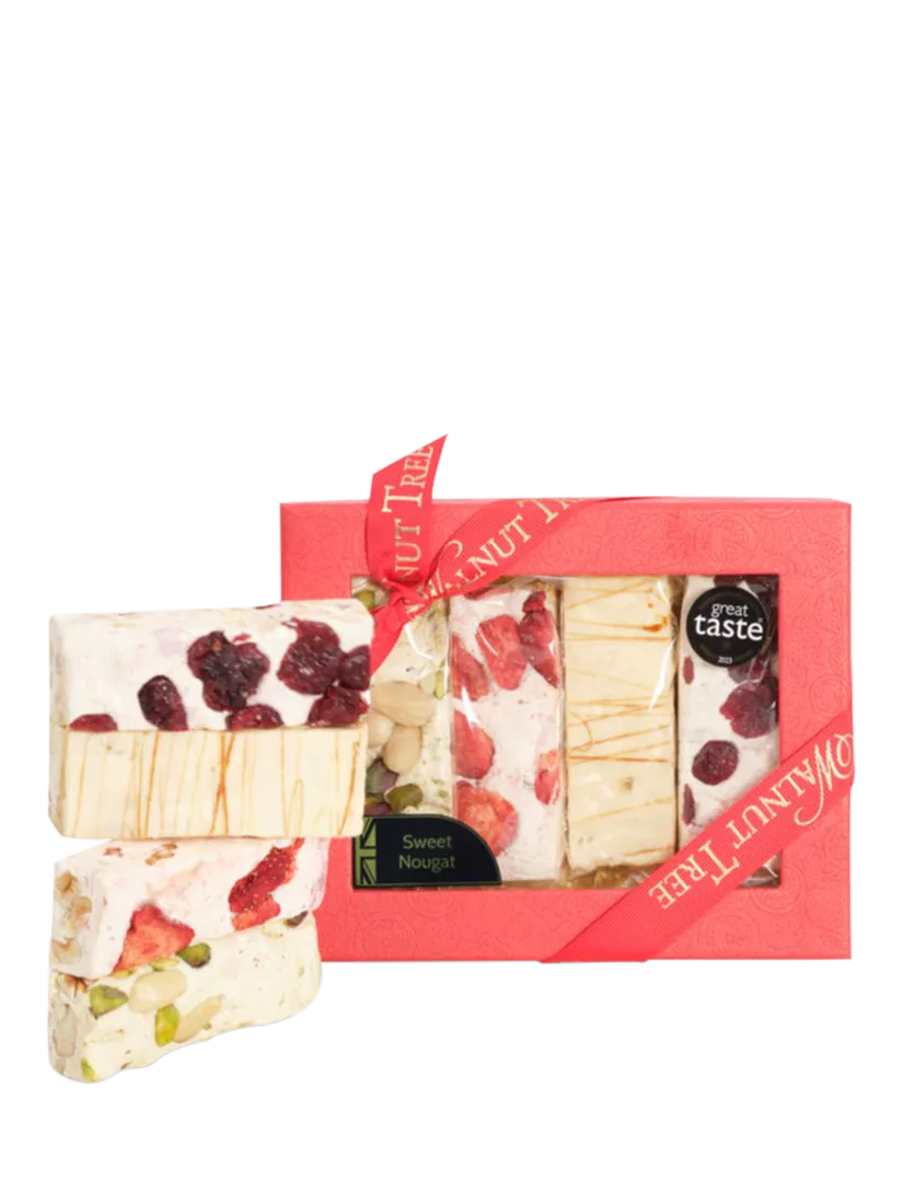 Indulge in the exquisite taste of these award-winning Walnut Tree Assorted Nougat Bars – a delightful treat perfect for sharing or enjoying on your own. These delicious bars offer a luxurious blend of sweet caramel and infused strawberry nougat, making them an ideal addition to your British grocery basket.