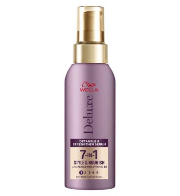 Read MoreWella Deluxe 7in1 Detangle & Strengthening Serum gives you stronger hair, deeply hydrating and instantly taming frizz and untagling to make hair easier to comb, brush and straighten. The formula, powered by natural ingredients including tapioca starch, features plex and pro-vitamin B5 to provide strength from within. Suitable for all hair types, the dermatologically tested moisturizing serum makes hair 99% more resilient and healthy-looking, with touchable softness that makes styling a joy!