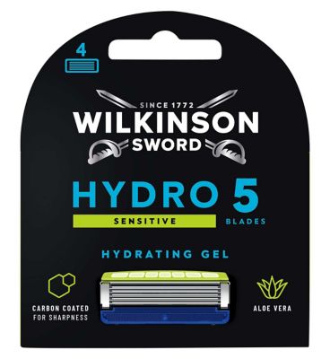 Read MoreExperience a masterfully close shave with the Hydro 5 Ultimate razor blades from Wilkinson Sword. Featuring the finest carbon coated blades crafted by Wilkinson Sword, the Hydro razor blades are our sharpest blade for an incredibly smooth and clean shave. Designed to protect your skin from shaving irritation, the Hydro 5 Ultimate razor blades feature unique hydrating gel pools enriched with menthol to care for sensitive skin, providing hydration throughout each shave. Additional shock absorb technology provides further control while shaving for optimal pressure on the skin. If you want to shave with great precision when styling or tackling those hard to reach spots, simply flip back the gel pools to guide your blade precisely where you need it. Dermatologically tested and suitable for sensitive skin. Experience a new level of smooth with Hydro 5 Ultimate, only from Wilkinson Sword, Blade Masters since 1772.