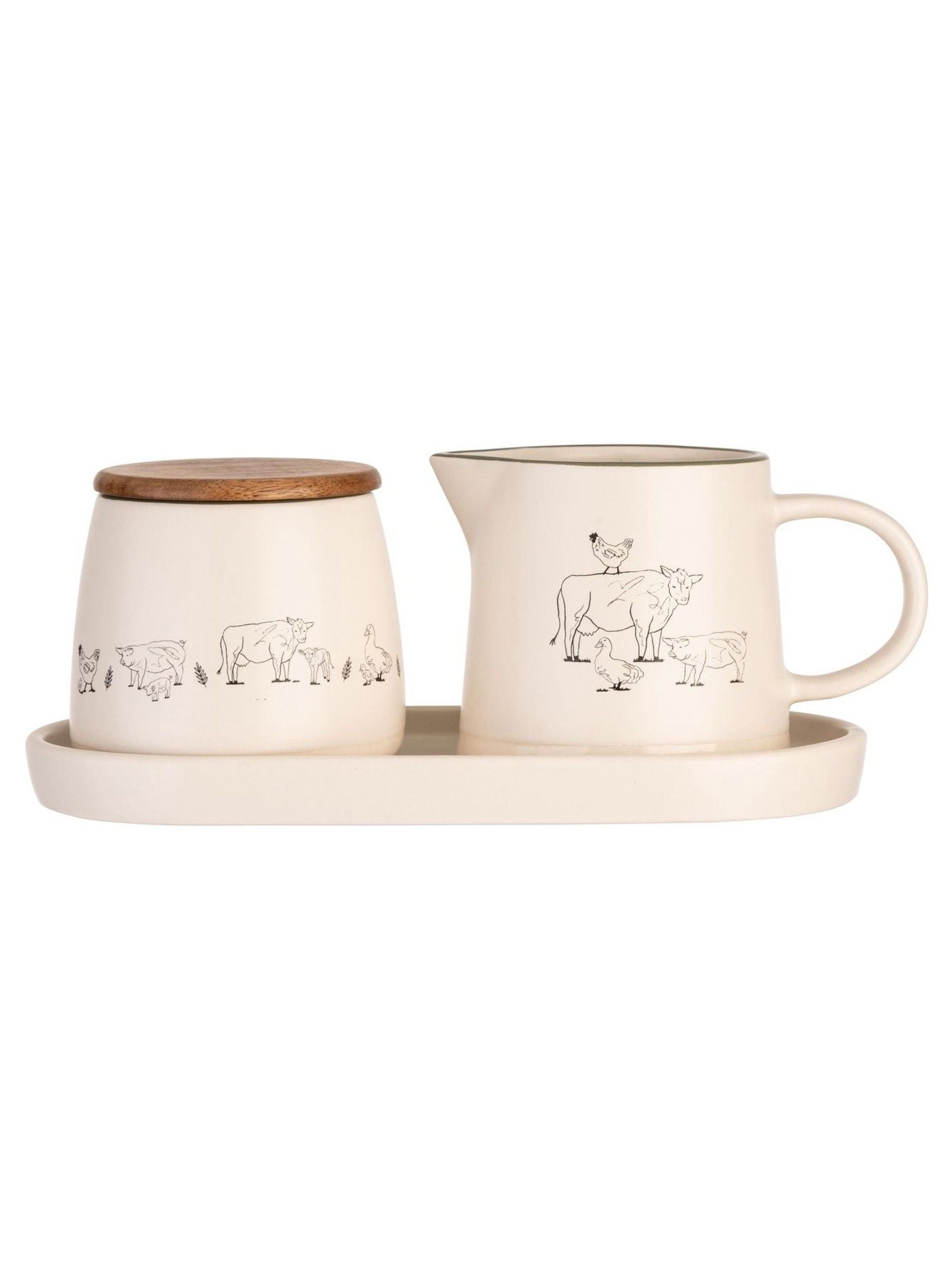 Delight in the comfort of tea time with the Woodbury Lane Sugar & Milk Jug Set. Featuring hand-painted rims and classic animal illustrations, this set includes an etched wooden lid to keep contents fresh. Paired with matching mugs and teapot, it's gift-ready in an open window box for a homely,... Read More