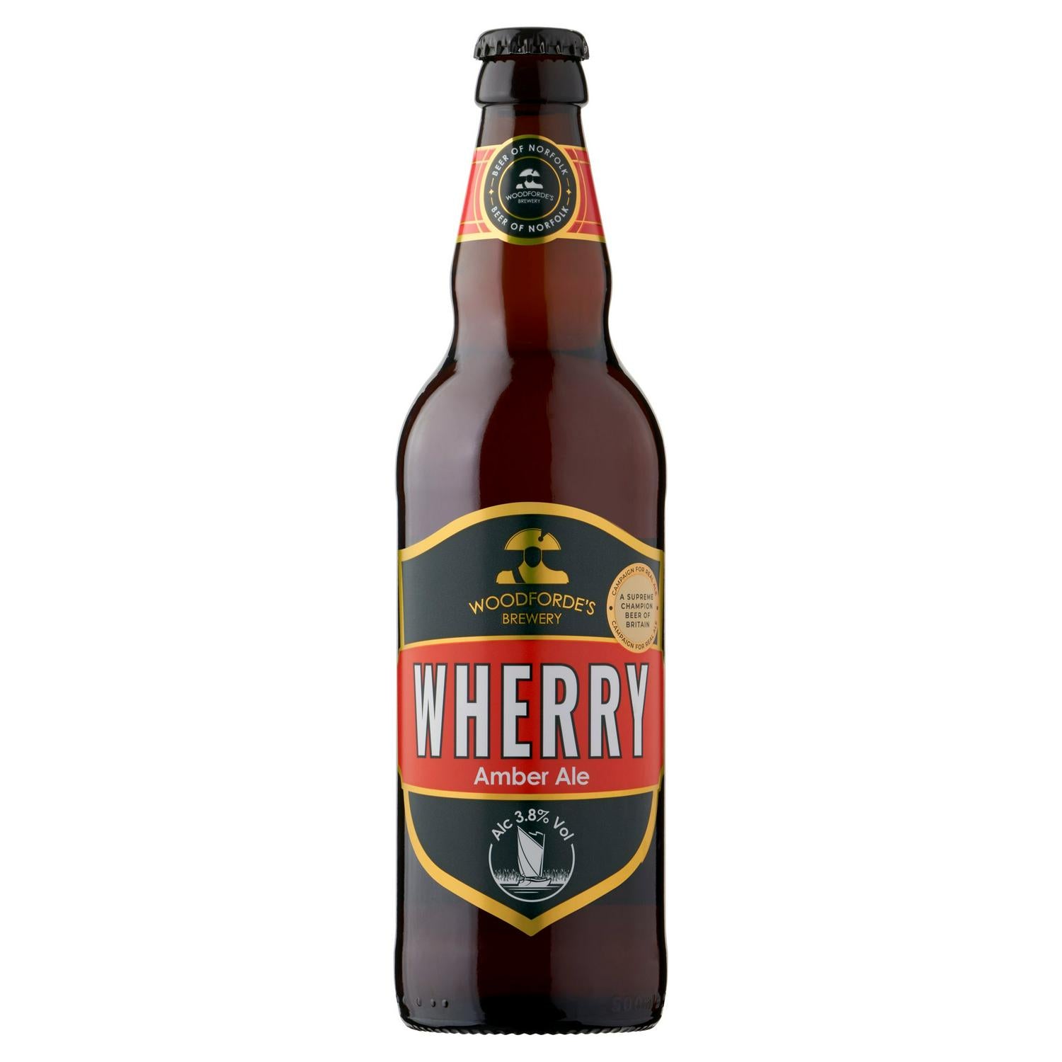 Woodforde's Wherry is recognised as a Supreme Champion Beer of Britain, presenting a lovely amber tint in the glass. This classic ale balances light malt and biscuity undertones with noticeable grapefruit elements for a complex flavour profile.