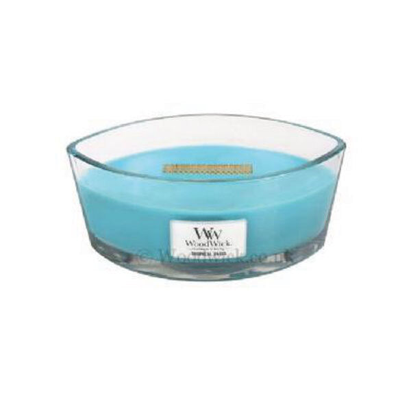 The Woodwick Large Hearthwick Tropical Oasis Candle delivers an inviting and vibrant atmosphere using its carefully formulated scent profile. This 16oz candle is expertly blended to evoke the feeling of a lush, warm getaway environment.