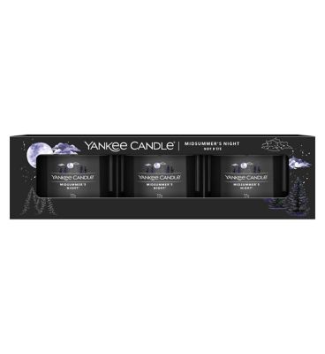 Experience the reimagined Yankee Candle Filled Votives, presented here in a convenient 3-pack of the Midsummer's Night fragrance. These small candles feature vibrant wax colours and hand-illustrated labels, fitting perfectly within the Signature Collection.