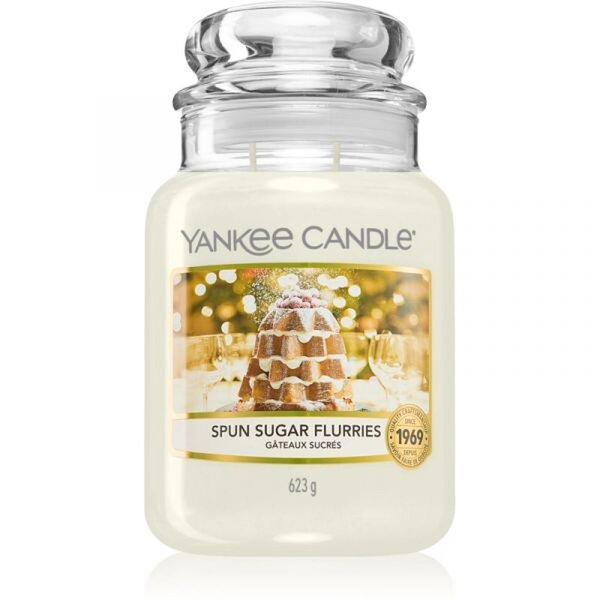 This large jar candle from Yankee Candle introduces the Spun Sugar Flurries fragrance to your space. It is presented as a premium quality candle from the original Yankee brand collection. Enjoy this substantial 623g format for long-lasting fragrance enjoyment.
