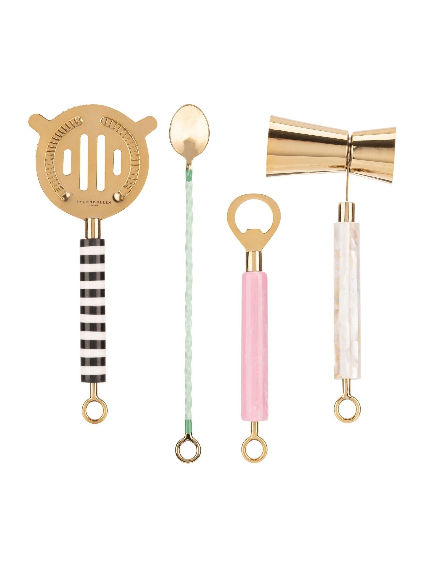 Get ready to shake, stir, and shine with Yvonne Ellen s Bar Tool Set! This giftable set features four fab finishes including marble and mother of pearl, complemented by bright colours and dazzling gold-coloured accents. Complete with a double jigger, long-handled bar spoon, strainer, and bottle opener, it's all you... Read More