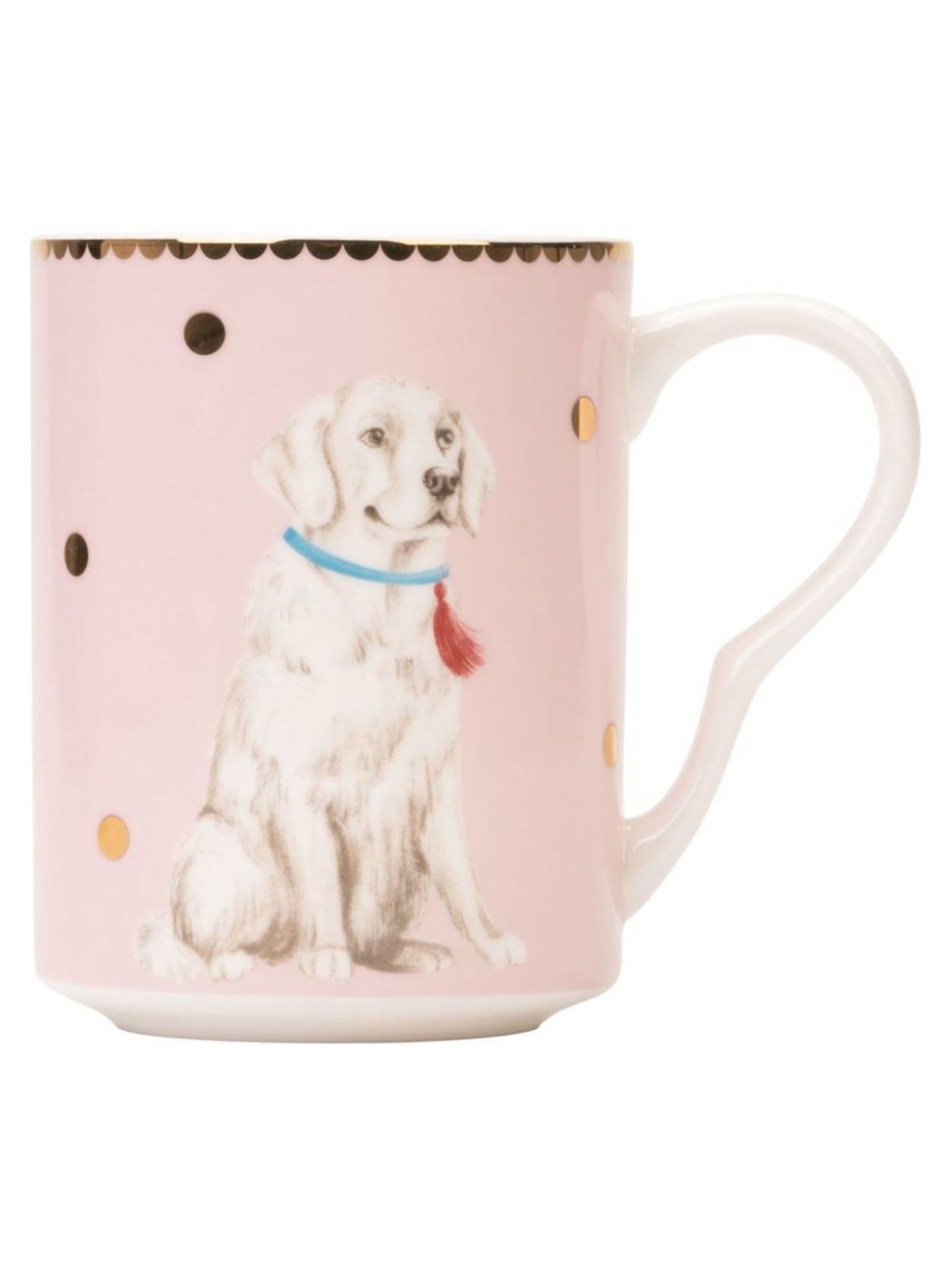 Perfect for dog lovers, the Yvonne Ellen Dog Mug Set features an adorable labrador design with gold coloured spots, a scalloped border, and a gold-detailed handle and a second mug with the iconic sausage dog design and a fun gold coloured slogan. The playful "Drink Up" slogan inside the rim adds a fun touch, while the fine bone china construction ensures a luxurious feel. These beautiful mugs are ideal for gifting and everyday use.