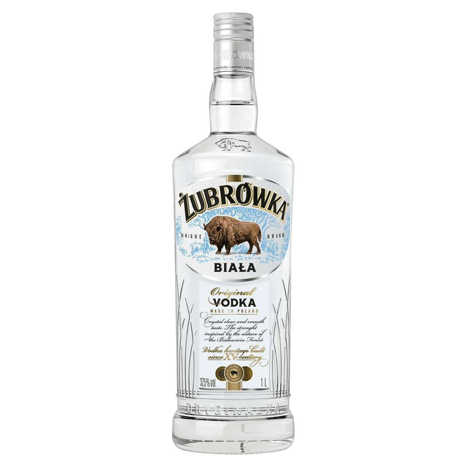 This is Żubrówka Biała, an original vodka proudly made in Poland, reflecting a heritage dating back to the 15th century. The clear spirit promises a crystal clear and smooth taste, drawing inspiration from the nature of the Białowieża Forest. Its distinct branding features the iconic bison symbol prominently displayed on the 1-litre bottle.